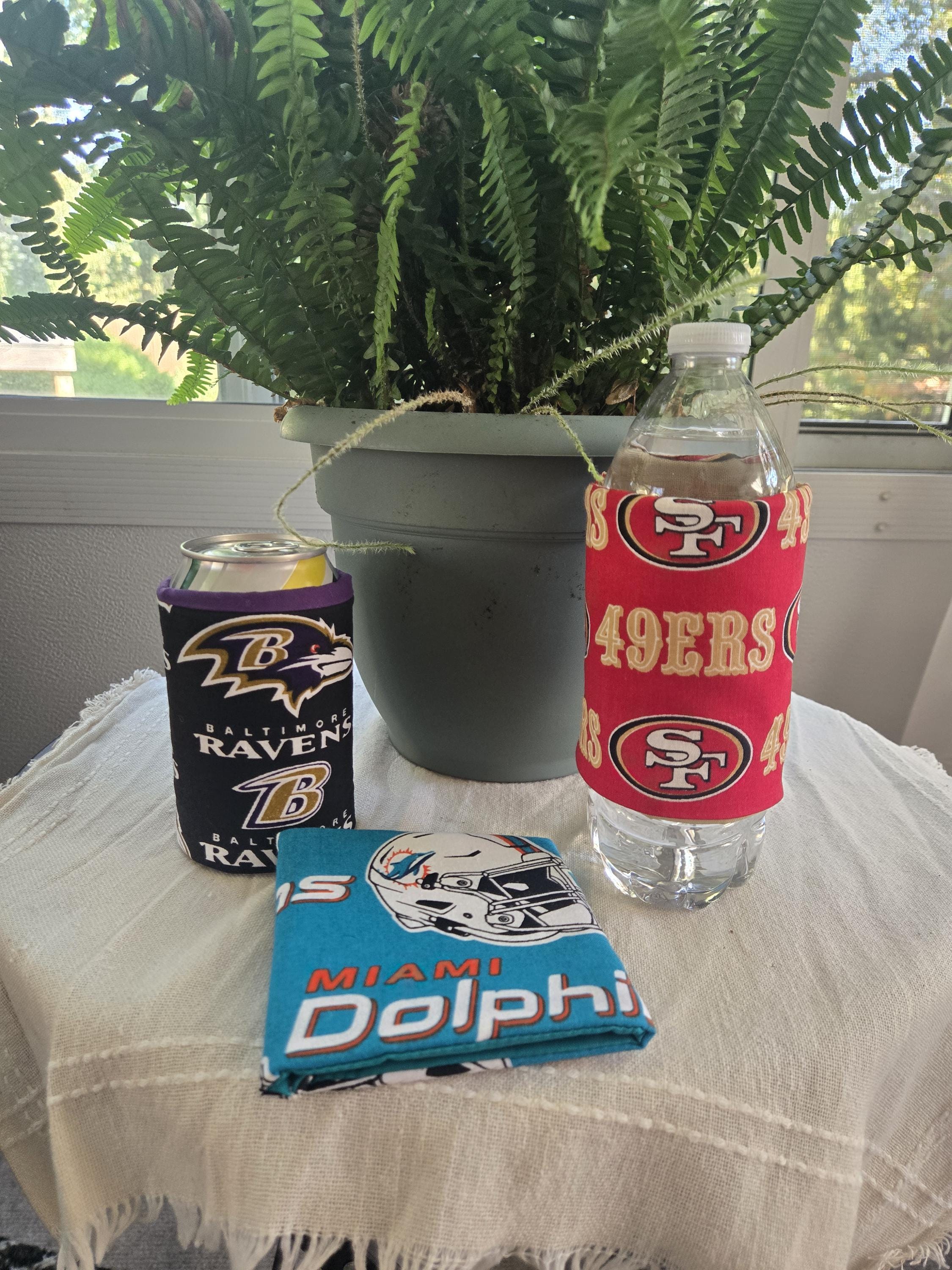Keep your favorite drinks colder for longer. No more slippery cans or bottles. Reusable, washable and eco friendly. Folds flat for easy storage in your purse, car, or beach bag. Makes a great gift for that football lover or tailgater.