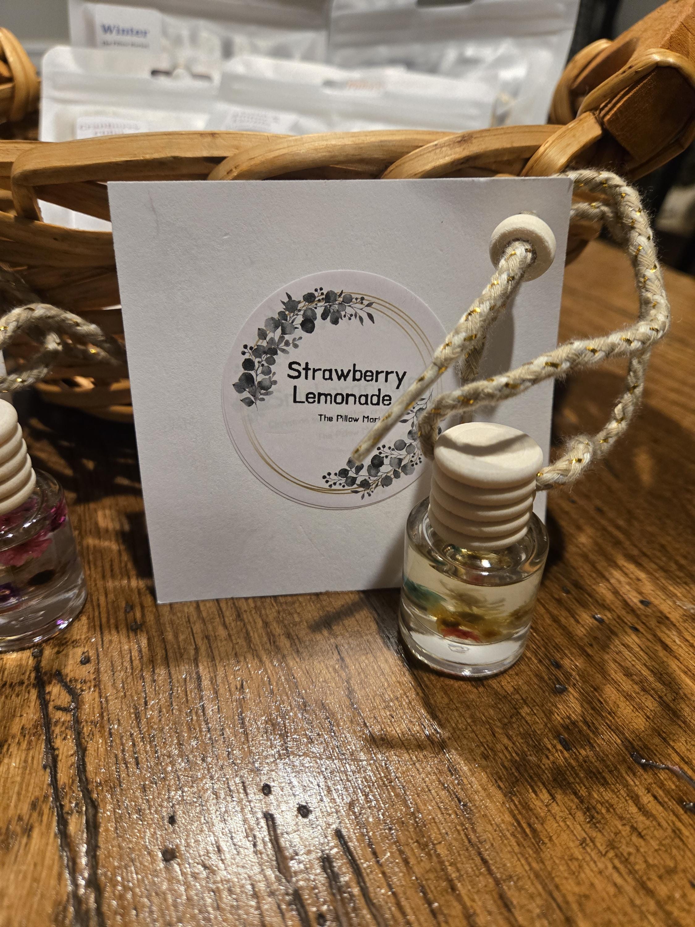 Comes in a 6 ml glass container, on a thick hanging rope with adjustable bead, to make it easy to hang in your car or that small space. Just be sure to remove the plastic stopper under the wooden lid before use. Comes packaged with free instruction card.
