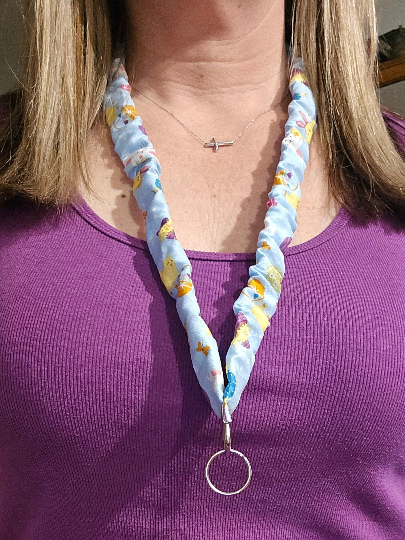 Hop into spring with our adorable Easter-themed scrunchie lanyard! This playful accessory keeps your keys, badges, and essentials within reach—so you can stay hands-free and totally put-together.