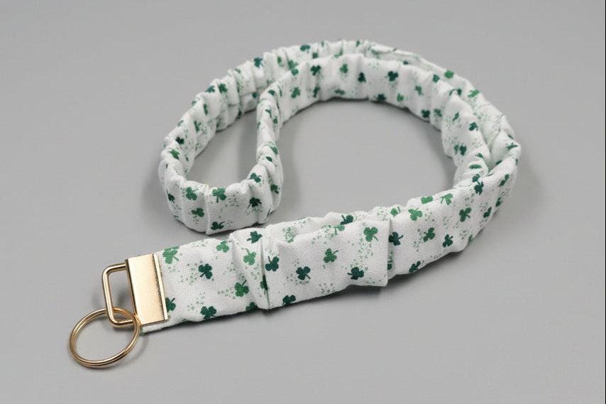 Featuring cheerful green shamrocks and lucky Irish-inspired prints on soft, stretchy fabric, this lanyard is perfect for celebrating the season while keeping your keys, ID, or small essentials within easy reach. The scrunchie-style design is gentle on your neck and adds a fun pop of color to any outfit.