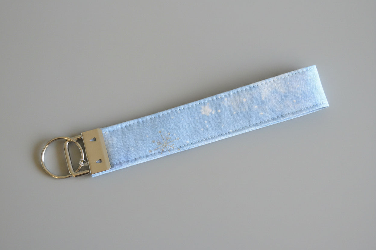 Jingle all the way to organized hands! This soft light blue wristlet features delicate snowflakes that capture winter's magic. Slip your wrist inside the secure fabric wristlet and keep your keys safe while adding a touch of seasonal charm to your everyday carry. Perfect for gifting to friends who love cozy, practical style.